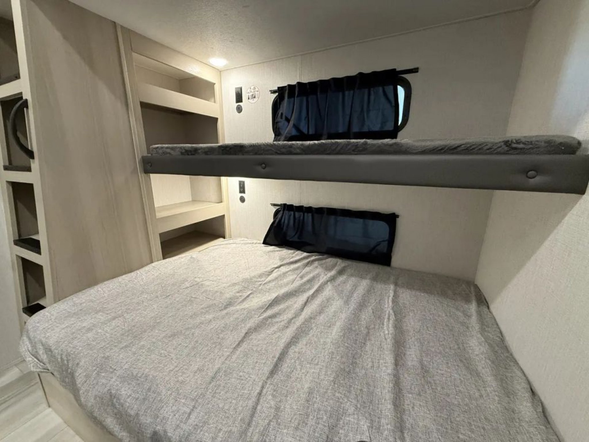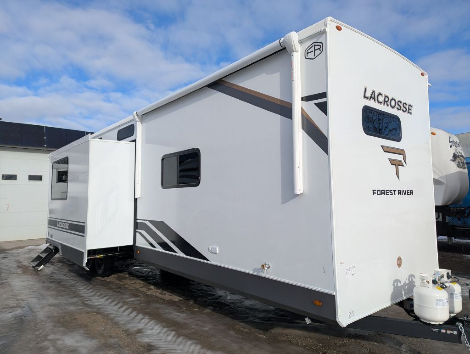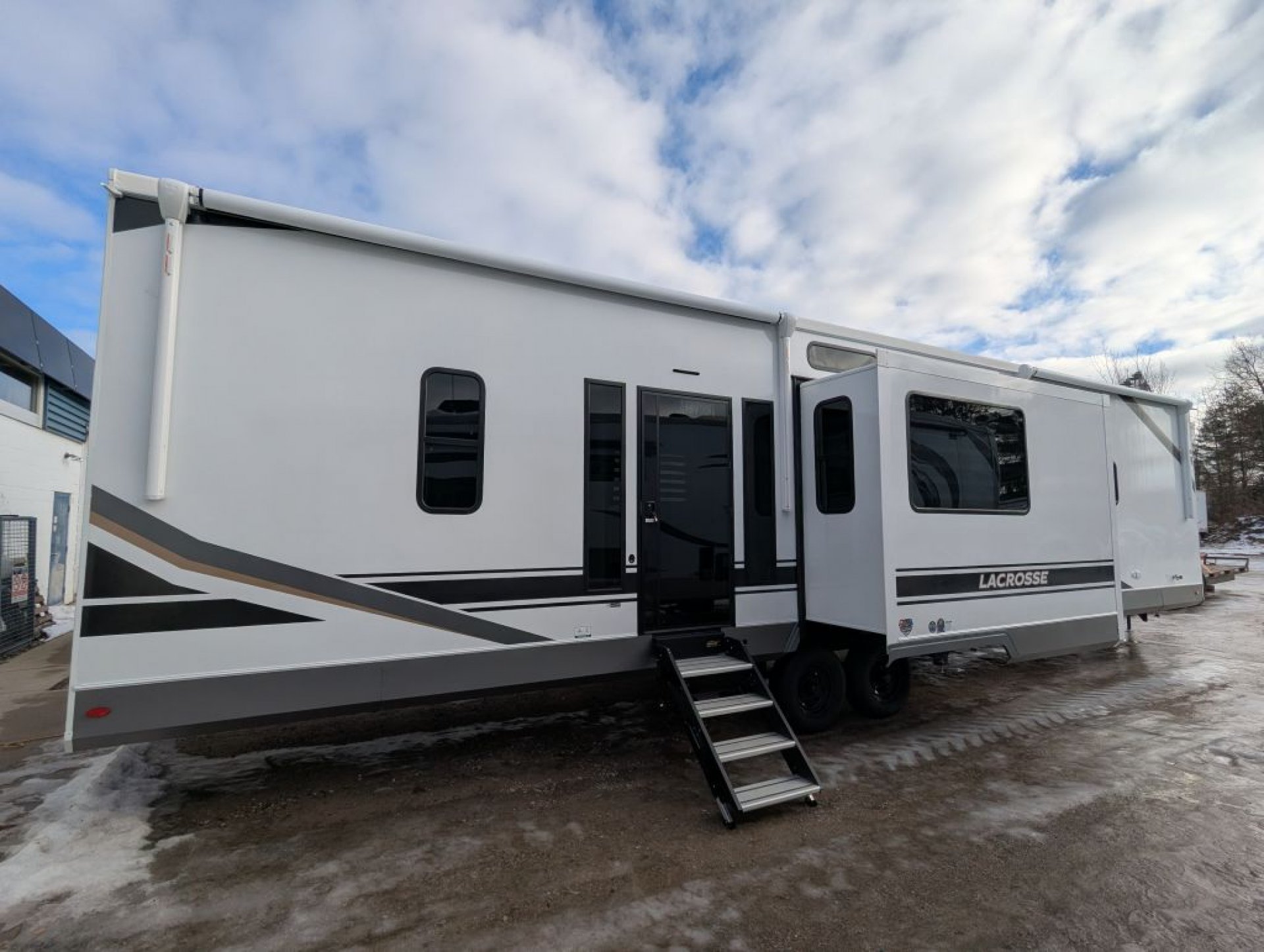 All-New Exclusive! 2026 Prime Time Lacrosse 44 Park – The Park Model Destination Trailer That Checks ALL the Boxes! This isn’t your average destination trailer — it’s the all-new original Lacrosse 44 Park, and it’s shaking up the industry! Nobody else has this floor plan yet, and once you step inside, you’ll see why it’s a big deal. Highlights & Features: 3 A/C units to keep everyone cool and comfortable 2 full bathrooms — yes, two! Bunk/loft room with a built-in desk and its own ensuite bath Finally — a bunk model loft destination trailer where the bunks are not located over the master bedroom! Gorgeous master suite with a king mattress, tons of storage, and optional laundry hookups Say goodbye to the sliding patio door — now featuring a large glass entry door with built-in window shades for a sleek, residential look Transom windows flood the space with natural light Big screen TV and fireplace standard Huge reclining sofa with a sofa bed for extra guests Residential-size fridge and plenty of counter space for the chef in the family Laminated aluminum frame construction, built on a solid frame, wrap-over roof design, and tinted windows — engineered for strength, comfort, and long-term durability Whether you’re a retired couple looking for a luxurious home-away-from-home or a family that needs extra space for kids or guests, this park model delivers unmatched comfort, smart design, and true residential living. Our first unit lands this month! Only 4 units available for the spring season — secure yours now before they’re gone!