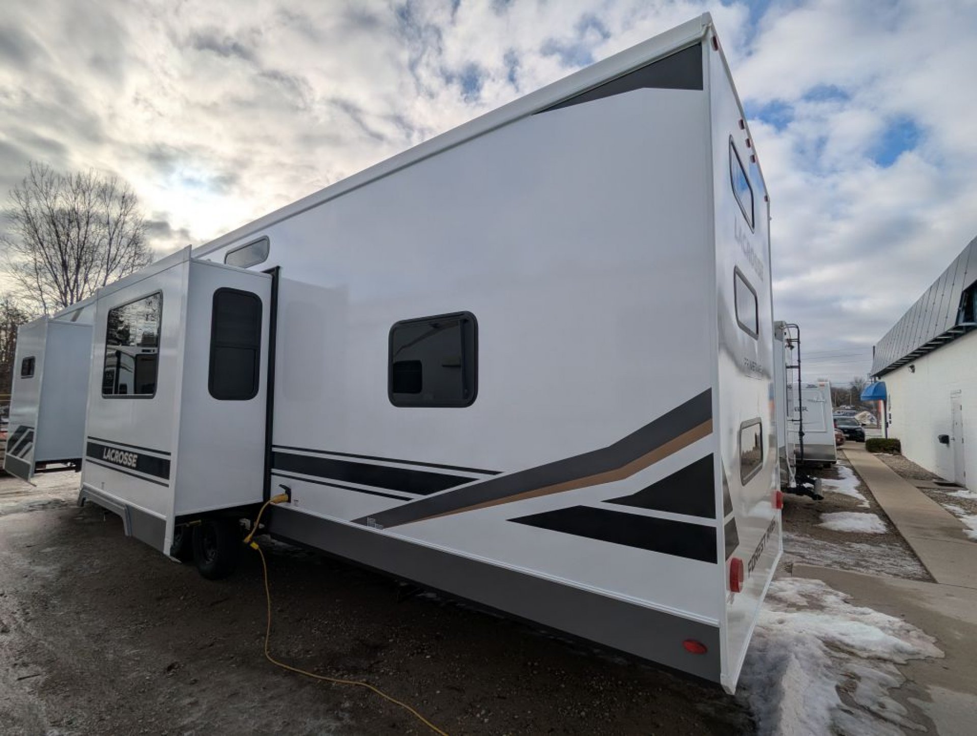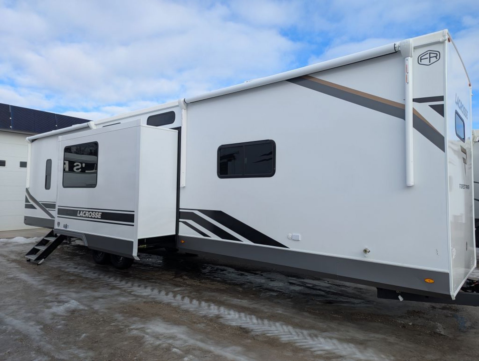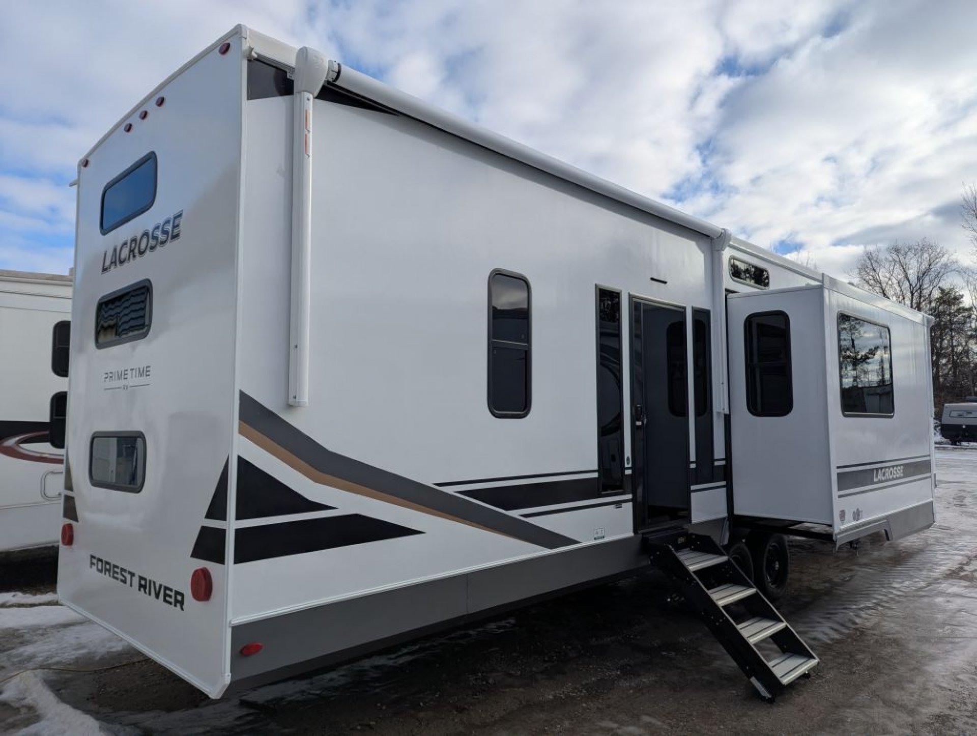 All-New Exclusive! 2026 Prime Time Lacrosse 44 Park – The Park Model Destination Trailer That Checks ALL the Boxes! This isn’t your average destination trailer — it’s the all-new original Lacrosse 44 Park, and it’s shaking up the industry! Nobody else has this floor plan yet, and once you step inside, you’ll see why it’s a big deal. Highlights & Features: 3 A/C units to keep everyone cool and comfortable 2 full bathrooms — yes, two! Bunk/loft room with a built-in desk and its own ensuite bath Finally — a bunk model loft destination trailer where the bunks are not located over the master bedroom! Gorgeous master suite with a king mattress, tons of storage, and optional laundry hookups Say goodbye to the sliding patio door — now featuring a large glass entry door with built-in window shades for a sleek, residential look Transom windows flood the space with natural light Big screen TV and fireplace standard Huge reclining sofa with a sofa bed for extra guests Residential-size fridge and plenty of counter space for the chef in the family Laminated aluminum frame construction, built on a solid frame, wrap-over roof design, and tinted windows — engineered for strength, comfort, and long-term durability Whether you’re a retired couple looking for a luxurious home-away-from-home or a family that needs extra space for kids or guests, this park model delivers unmatched comfort, smart design, and true residential living. Our first unit lands this month! Only 4 units available for the spring season — secure yours now before they’re gone!