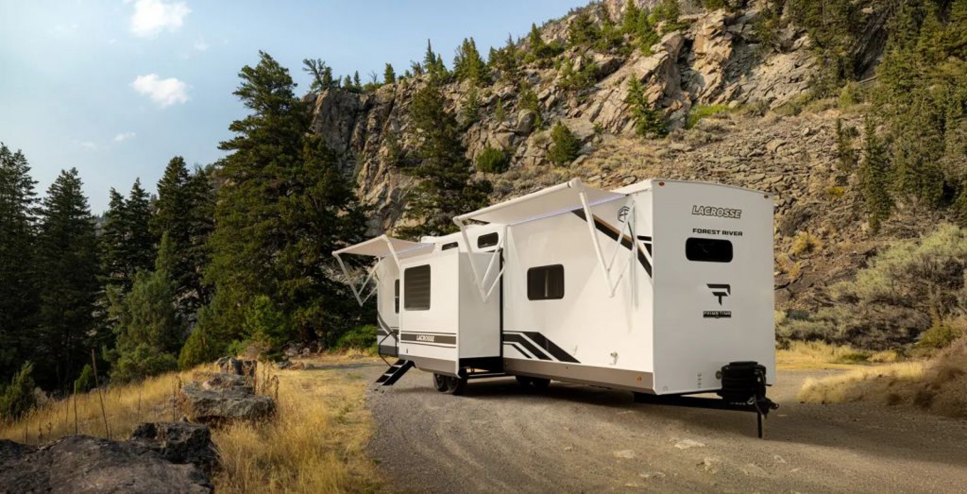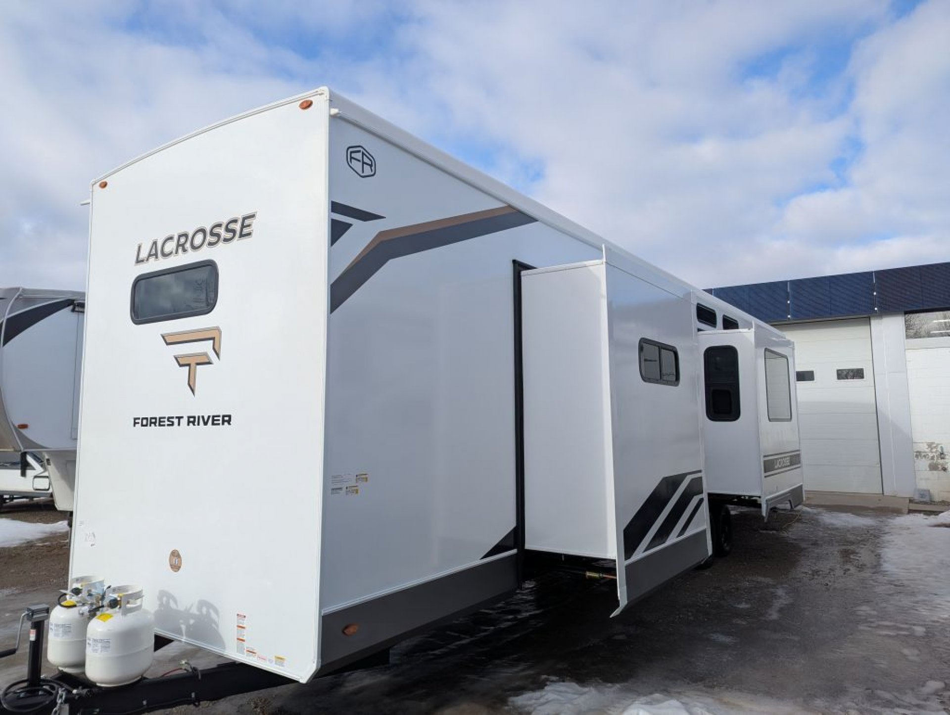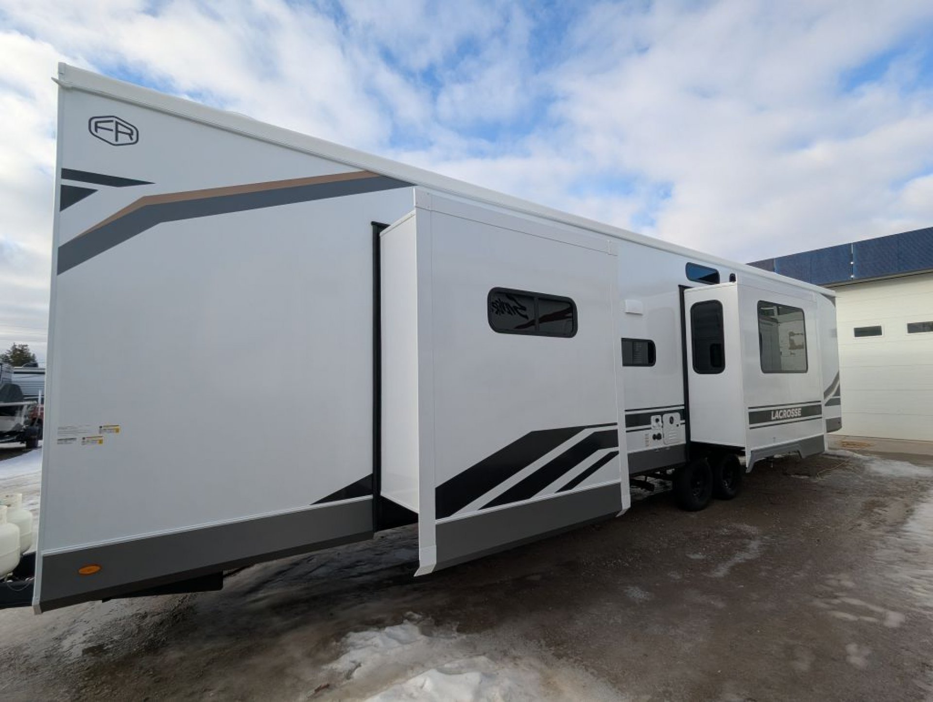 All-New Exclusive! 2026 Prime Time Lacrosse 44 Park – The Park Model Destination Trailer That Checks ALL the Boxes! This isn’t your average destination trailer — it’s the all-new original Lacrosse 44 Park, and it’s shaking up the industry! Nobody else has this floor plan yet, and once you step inside, you’ll see why it’s a big deal. Highlights & Features: 3 A/C units to keep everyone cool and comfortable 2 full bathrooms — yes, two! Bunk/loft room with a built-in desk and its own ensuite bath Finally — a bunk model loft destination trailer where the bunks are not located over the master bedroom! Gorgeous master suite with a king mattress, tons of storage, and optional laundry hookups Say goodbye to the sliding patio door — now featuring a large glass entry door with built-in window shades for a sleek, residential look Transom windows flood the space with natural light Big screen TV and fireplace standard Huge reclining sofa with a sofa bed for extra guests Residential-size fridge and plenty of counter space for the chef in the family Laminated aluminum frame construction, built on a solid frame, wrap-over roof design, and tinted windows — engineered for strength, comfort, and long-term durability Whether you’re a retired couple looking for a luxurious home-away-from-home or a family that needs extra space for kids or guests, this park model delivers unmatched comfort, smart design, and true residential living. Our first unit lands this month! Only 4 units available for the spring season — secure yours now before they’re gone!