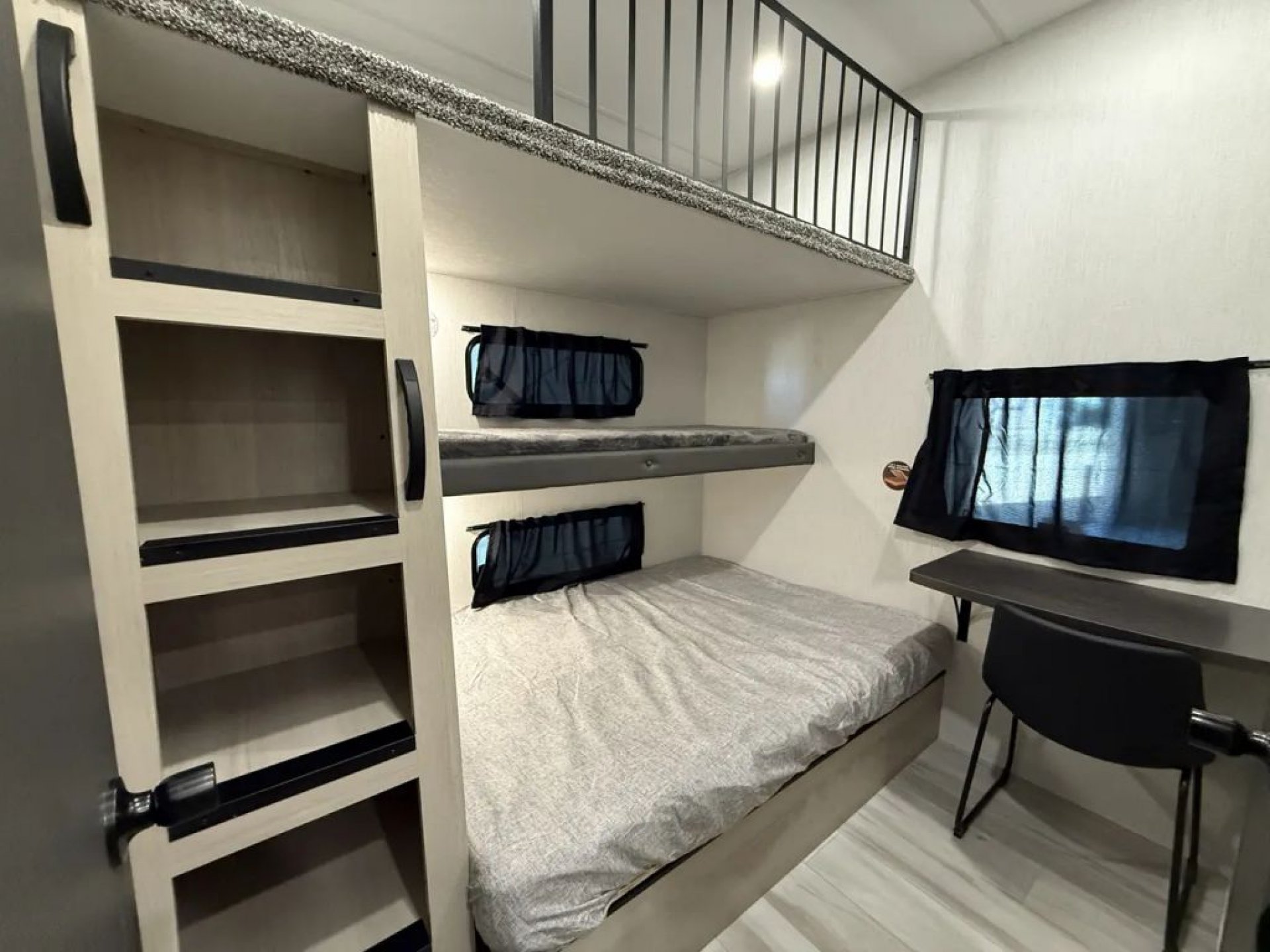 All-New Exclusive! 2026 Prime Time Lacrosse 44 Park – The Park Model Destination Trailer That Checks ALL the Boxes! This isn’t your average destination trailer — it’s the all-new original Lacrosse 44 Park, and it’s shaking up the industry! Nobody else has this floor plan yet, and once you step inside, you’ll see why it’s a big deal. Highlights & Features: 3 A/C units to keep everyone cool and comfortable 2 full bathrooms — yes, two! Bunk/loft room with a built-in desk and its own ensuite bath Finally — a bunk model loft destination trailer where the bunks are not located over the master bedroom! Gorgeous master suite with a king mattress, tons of storage, and optional laundry hookups Say goodbye to the sliding patio door — now featuring a large glass entry door with built-in window shades for a sleek, residential look Transom windows flood the space with natural light Big screen TV and fireplace standard Huge reclining sofa with a sofa bed for extra guests Residential-size fridge and plenty of counter space for the chef in the family Laminated aluminum frame construction, built on a solid frame, wrap-over roof design, and tinted windows — engineered for strength, comfort, and long-term durability Whether you’re a retired couple looking for a luxurious home-away-from-home or a family that needs extra space for kids or guests, this park model delivers unmatched comfort, smart design, and true residential living. Our first unit lands this month! Only 4 units available for the spring season — secure yours now before they’re gone!