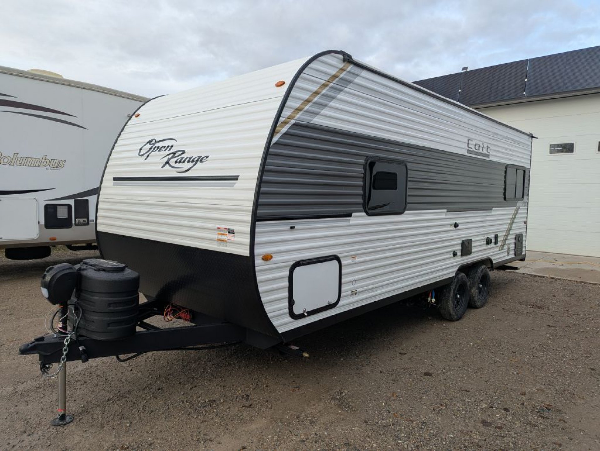 ?? 2026 Highland Ridge Open Range 21QB – Lightweight Couples Trailer! ?? Check out this sharp 2026 Highland Ridge Open Range 21QB, the perfect lightweight couples trailer that’s easy to tow, simple to set up, and loaded with smart features! With a dry weight of only 4,430 lbs, this unit tows great behind most half-ton pickups and larger SUVs. Inside, you’ll find a bright, open layout with a front walk-around queen bed, a rear dinette and sofa bed for extra sleeping space, and a large pantry for all your camping supplies. The kitchen is well laid out with good counter space and a 12V two-door refrigerator, while the on-demand water heater gives you endless hot water when you need it. This trailer is solar prepped and ready for off-grid camping upgrades. Outside, you’ll enjoy a power awning with an LED light strip, tandem axles with easy-lube hubs, dual 20 lb propane tanks, and a brand new battery — ready for the road! Part of the Jayco family of companies, Open Range trailers are known for their solid construction, thoughtful design, and excellent value.