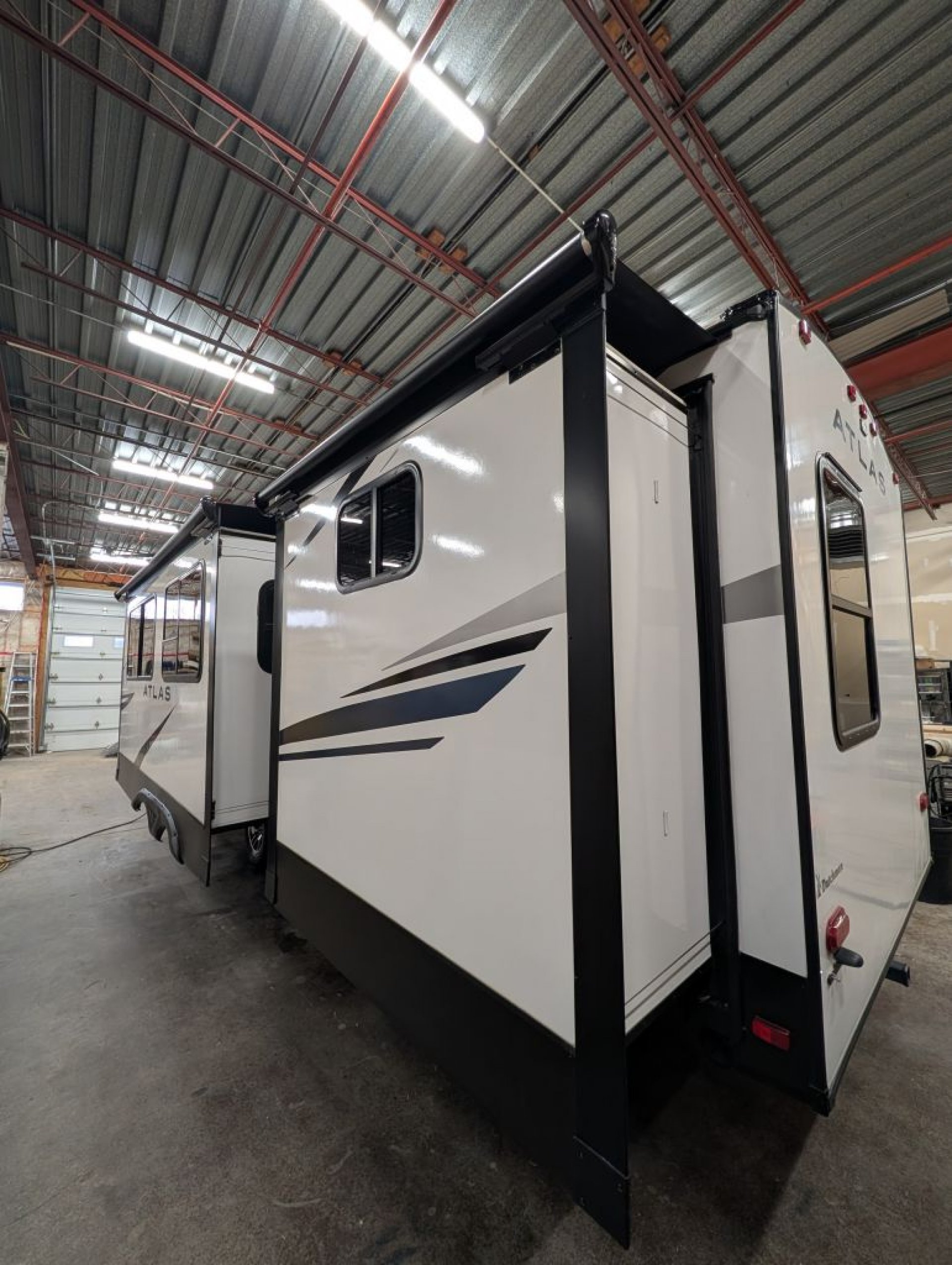 The Atlas lineup is known for its modern interior design, smart storage, and comfortable living space, making it a great choice for both weekend trips and longer stays.